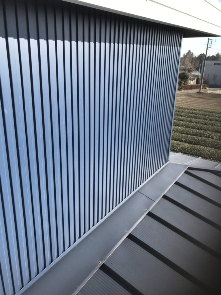 うっすらと黒光りするガルバリウム鋼板の外壁は、スタイリッシュで、こだわる建築士さん設計士さんなどから積極的に提案もされております。